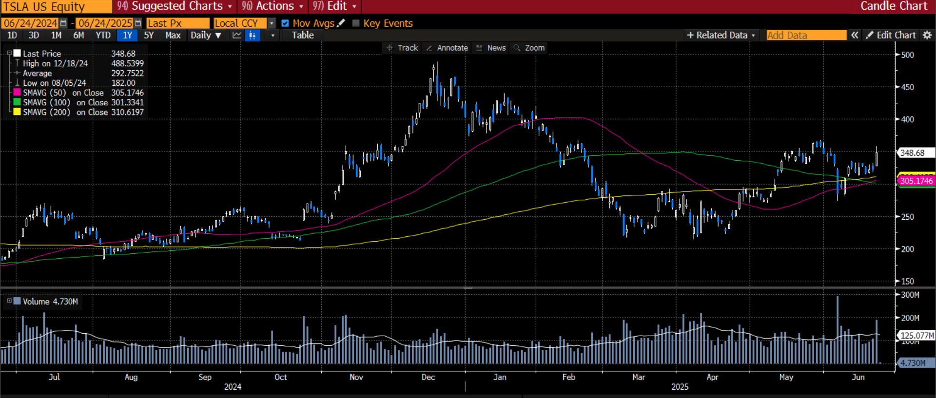 Chart 2: Tesla, 1-year chart