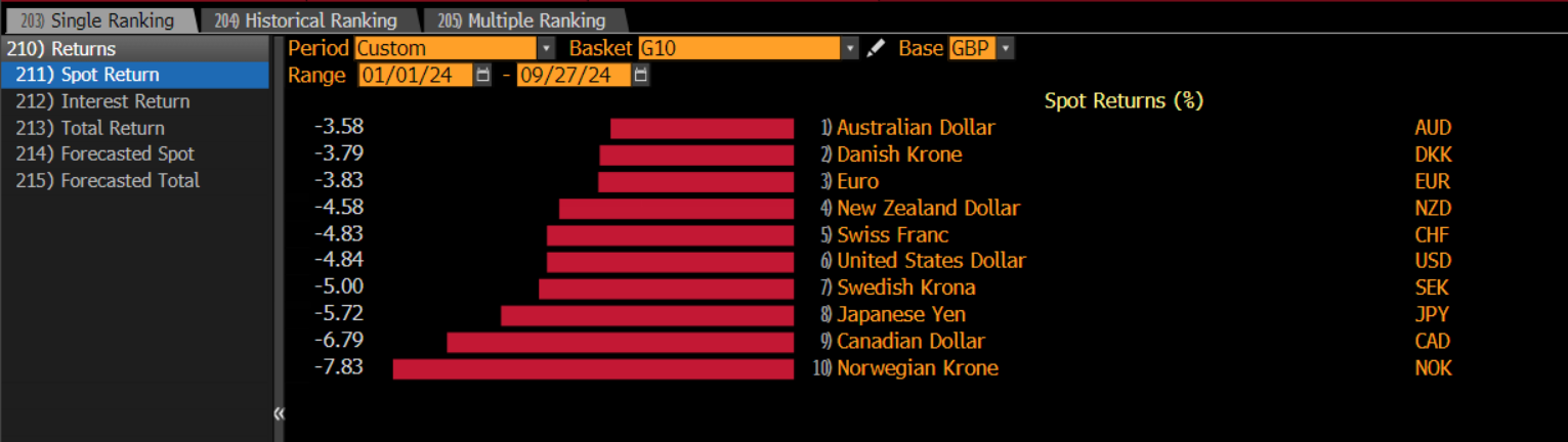 One of the most important elements of this month’s Budget will be the government’s industrial strategy for the next 10 years. However, don’t expect a detailed plan to be delivered by the Chancellor on 30th October. Instead, she is likely to mention some of the key headlines from her strategy. A green paper is likely to be published around the time of the Budget, with a full strategy document due in 2025. This will include detailed plans for the National Wealth Fund, which is likely to be used to fund investments in the steel industry, ports, battery factories, and green tech projects to help with the UK’s transition to net zero. The market is hungry for details about the plans for UK industry. If the mood music is positive about this industrial strategy and its potential to boost UK growth, then this could be good news for the pound. Sterling is the best performing currency in the G10 so far this year, and the upside surprise to growth and the improving outlook is no doubt one of the reasons for this. Thus, a positive reaction to the Chancellor’s growth plan could be mildly pound positive.