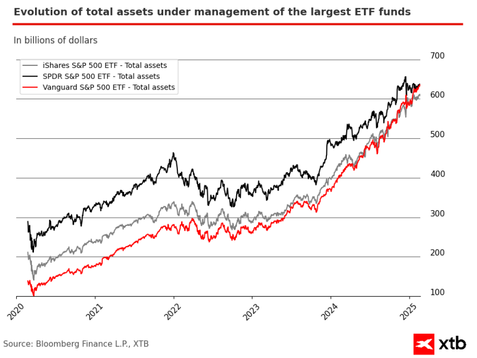 Fees will probably be one of the factors that shift money from SPY to other ETFs on the S&P 500 index. In third place on this list in terms of the volume of assets held is the iShares fund from BlackRock, which manages approximately 611 billion USD, so it is possible that we will soon see the SPY fund move even to third place. Ultimately, this fee price war means that the main beneficiary of the benefits is the customer. Thanks to the competitive struggle, he can get access to ETFs on this index (albeit slightly different ones, since European regulation does not allow offering American ETFs in Europe, but in practice almost the same funds are offered in Europe and are even traded in Euros) for really extremely low fees while maintaining great flexibility and liquidity. Of course, we at XTB also offer several ETF funds from various issuers. The long-term nominal return on this index has been around 10% per year for the past 100 years or so, or around 7% per year after inflation, meaning that the value of an investment in the S&P 500 has doubled on average every 10 years. Over the past 15 years, returns have been even slightly higher, which is also attracting new investors and increasing the popularity of this investment vehicle.