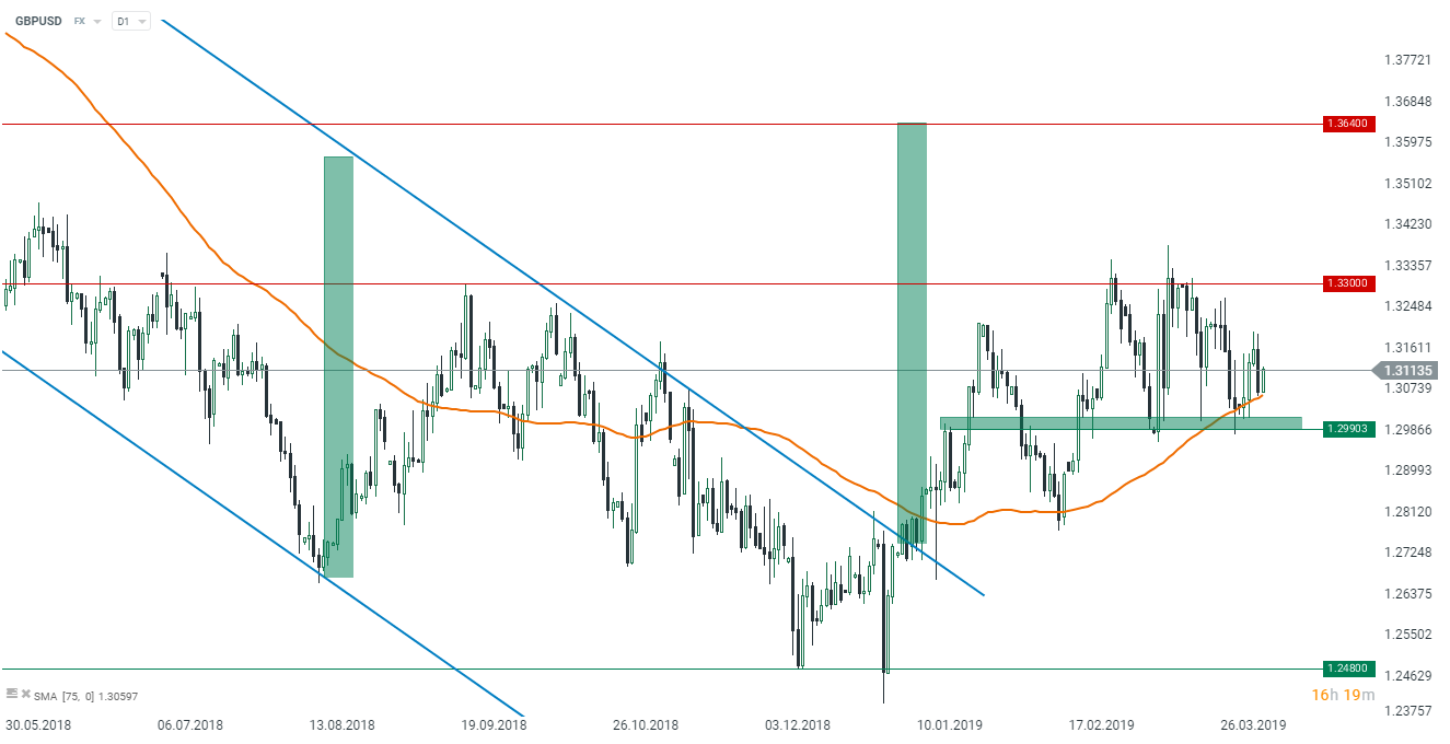 The GBPUSD remains little changed despite a proposal of the 12-month deadline extension. The pair keeps trading within a range between 1.30 and 1.33. Source: xStation5