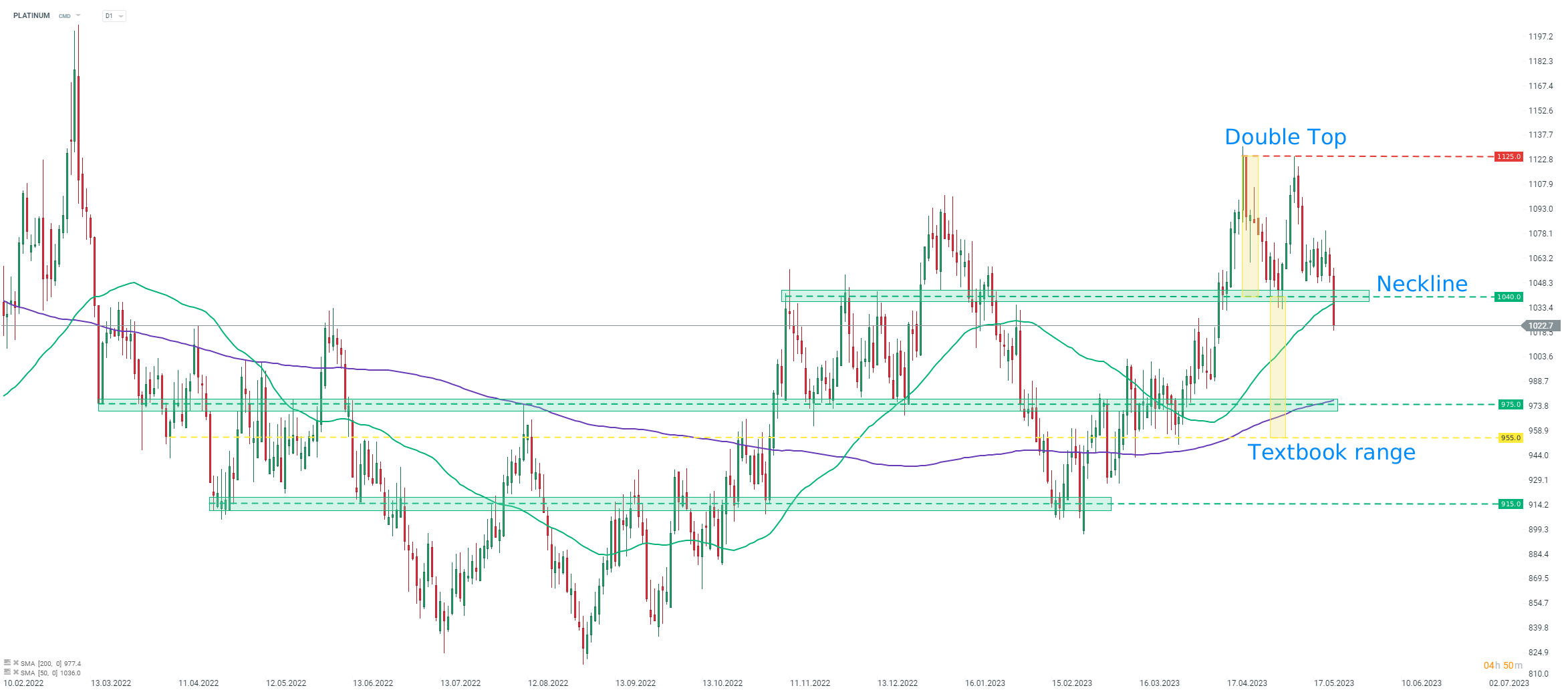 However, bears should note that price would need to break below an important support zone in order to reach the range of double top pattern - $975 area, marked with precious price reactions as well as the 200-session moving average (purple line).
