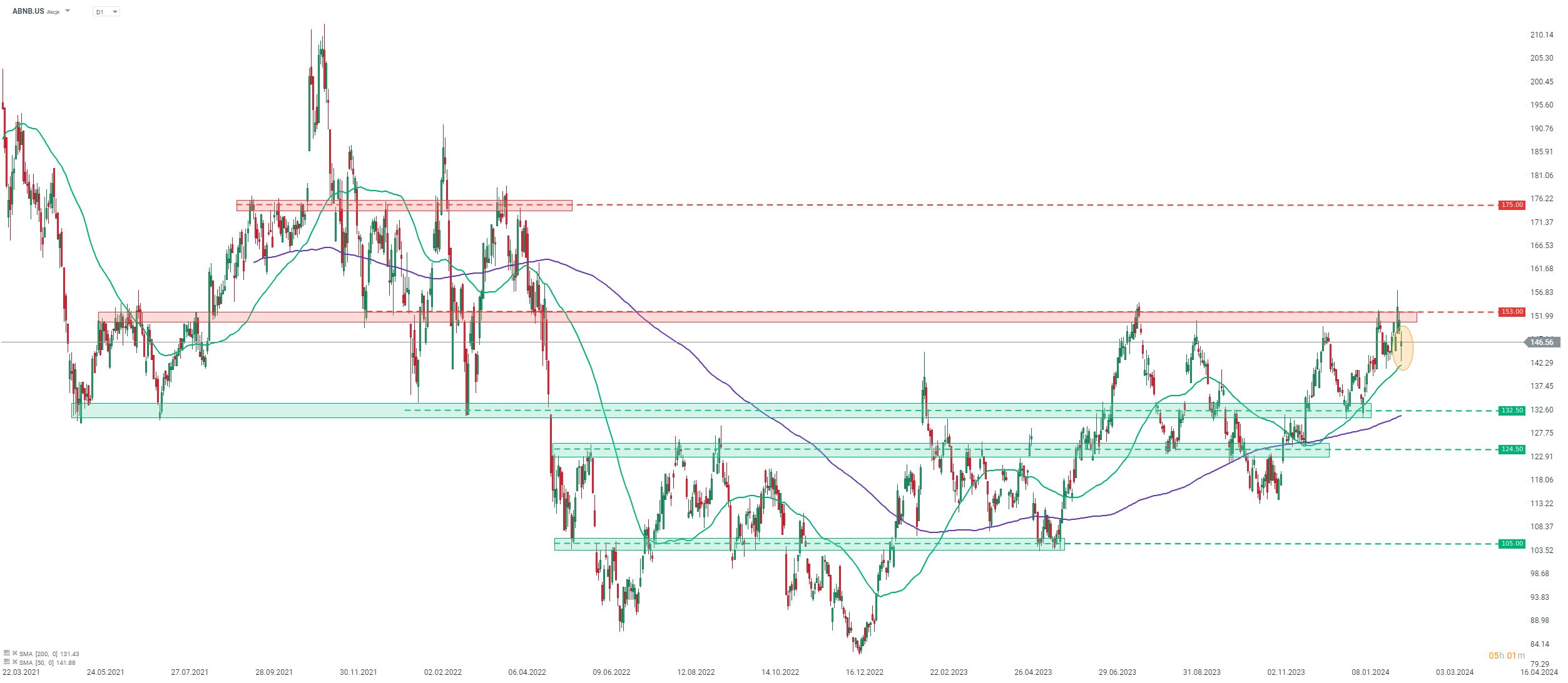 Airbnb (ABNB.US) is trading 3% lower, following the release of the Q4 2023 earnings report. This drop is somewhat puzzling given that the earnings report as well as outlook for the first quarter of 2024 were solid.