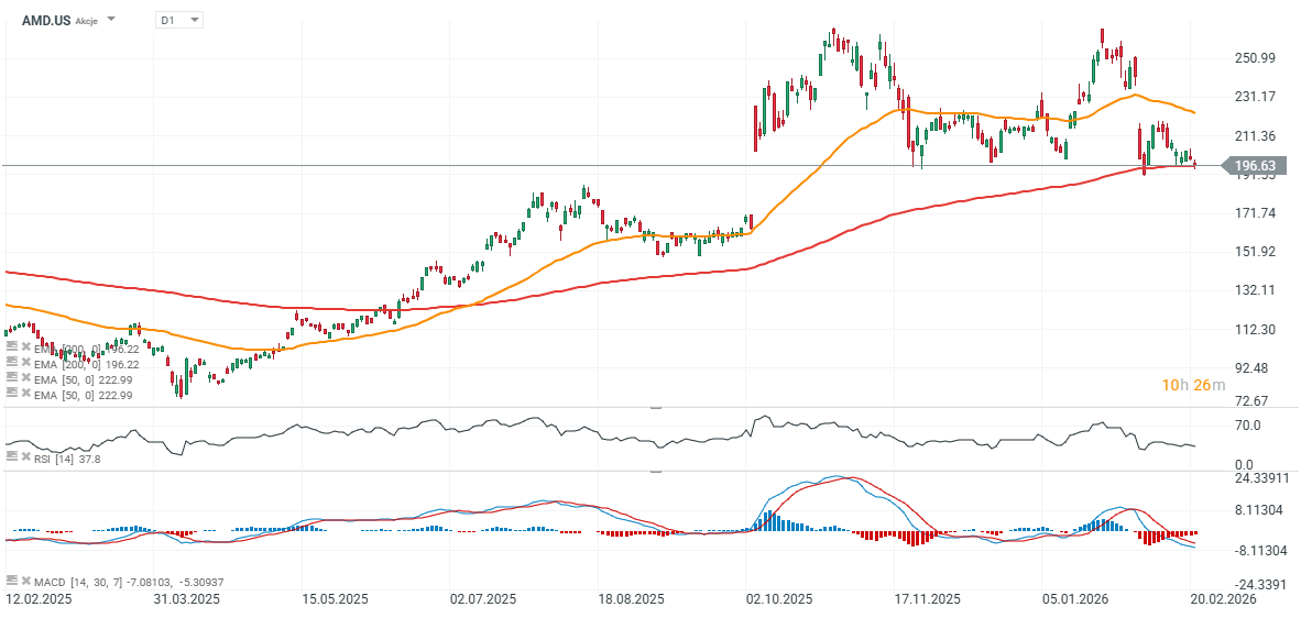 AMD shares have recently fallen nearly 25% from the highs and are now testing the ~$191 area (EMA200). The Meta agreement appears to provide near-term relief and helps re-anchor the stock to a fundamentally supported uptrend.