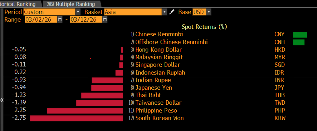 Chart 1: USD vs Asian FX month to date