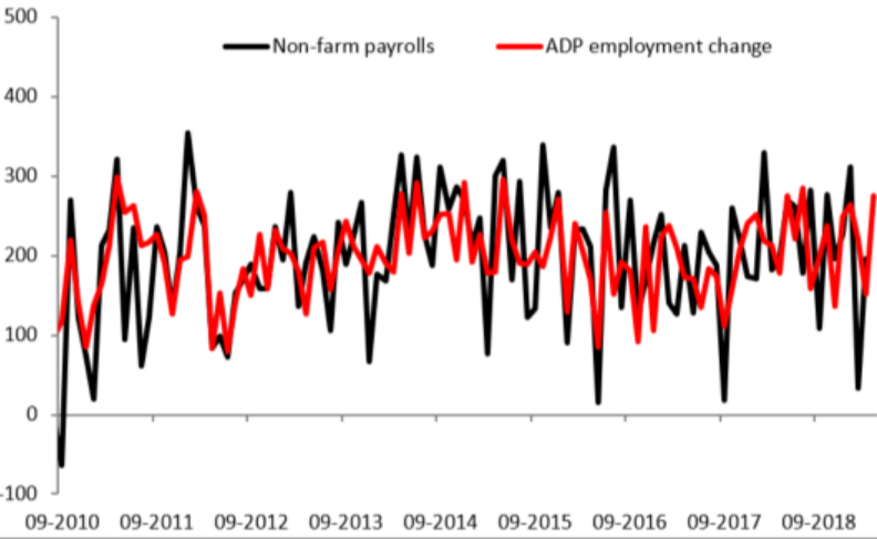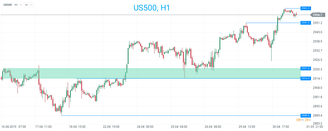 ADP employment change recovered strongly in April with a sizable upwards revision to the March data to boot. This will raise hopes of a strong NFP number come Friday. Source: xStation