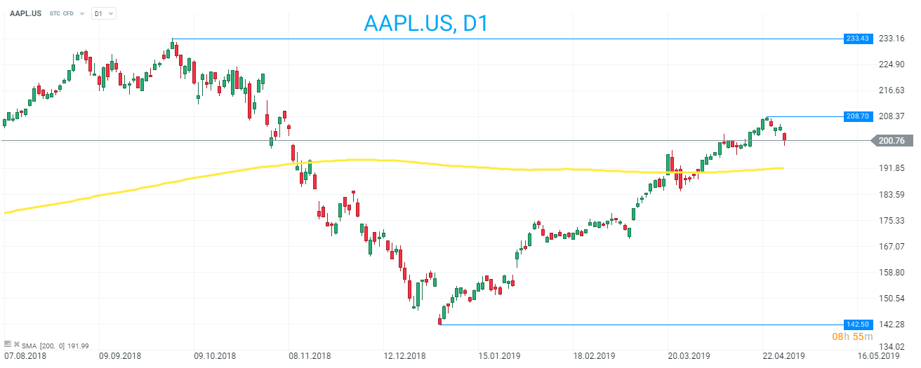 Apple shares are set to begin at their highest level of the year this afternoon with price called to move back to around the 210 mark and start some 5% on Tuesday’s close. Source: xStation