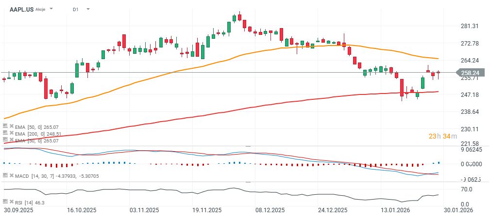 Apple (AAPL.US), the third-largest company in the U.S., reported its Q4 2025 results today. The stock rose modestly after the release — by just under 2%. Both revenue and earnings per share beat Wall Street expectations. The biggest surprise by far was the strength of iPhone sales in China and, more broadly, the very strong growth in iPhone revenue overall. Notably, Apple’s China sales had been weak over the past three years, making the current rebound an outright surprise for analysts. Outside of Apple’s report, Visa (V.US) also released results, with its shares down about 1.5%, while storage and data media maker SanDisk (SNDK.US) is up nearly 14%.
