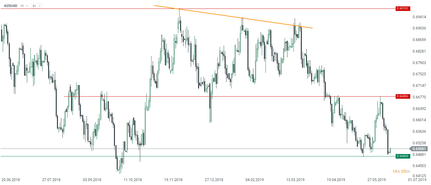 Looking at the currency market we may notice that the kiwi is by far the best performing major currency being 0.25% up against the US dollar in early European trading. In terms of economic releases, we got the PMI-like reading for services for May which showed a rise to 53.6 from 52. It is worth noting that the index grew from its lowest level since 2012. On the other hand, the details revealed that a rise in inventories was the prime reason behind the overall improvement last month. At that stage of the business cycle it could mean that businesses became more cautious in May and demand may have weakened a bit. Apart from the NZ dollar it is also worth looking at the Turkish lira as it is losing against the greenback this morning (ca. -0.4%). The USDTRY has been trading higher in recent hours after the news delivered by Recep Erdogan on Sunday. He said that Turkish exporters would be exempt from paying a new tax (a 0.1% rate reintroduced in May) when purchasing foreign currencies. Let us recall that the CBRT left monetary policy settings unchanged at its meeting last week. On top of that, we will have the elections in Istanbul on this Sunday (June 23) after the Supreme Electoral Council cancelled the March elections result. Therefore, one may expect that the TRy could be under downside pressure until then.