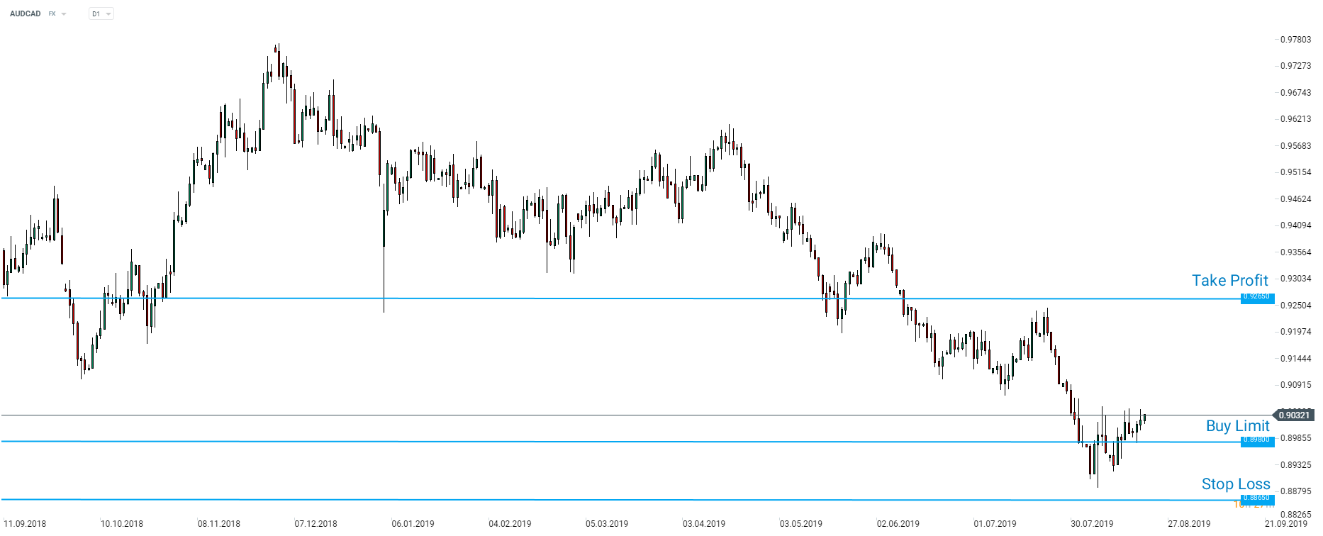 Deutsche Bank recommends taking a long pending position on AUDCAD with a limit order at 0.8980, a target of 0.9265 and a stop loss order placed at 0.8865. Source: xStation5