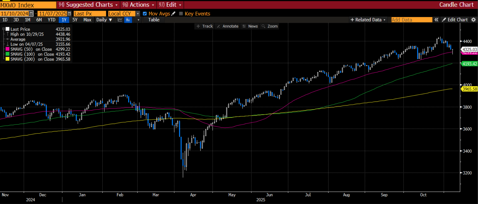 Chart 1: MSCI world index, bounces ahead of the 50-day sma.