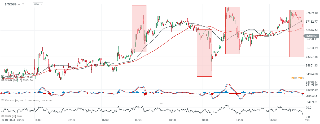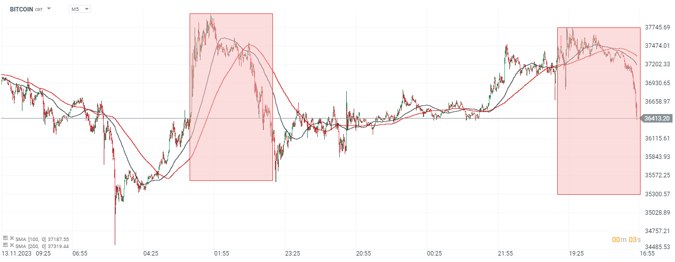 If we look at recent market geometry patterns, the possible range of Bitcoin's dynamic correction is around $35,500. At this level we can expect stronger support, also supported by the lows of the previous downward structure. Source: xStation5