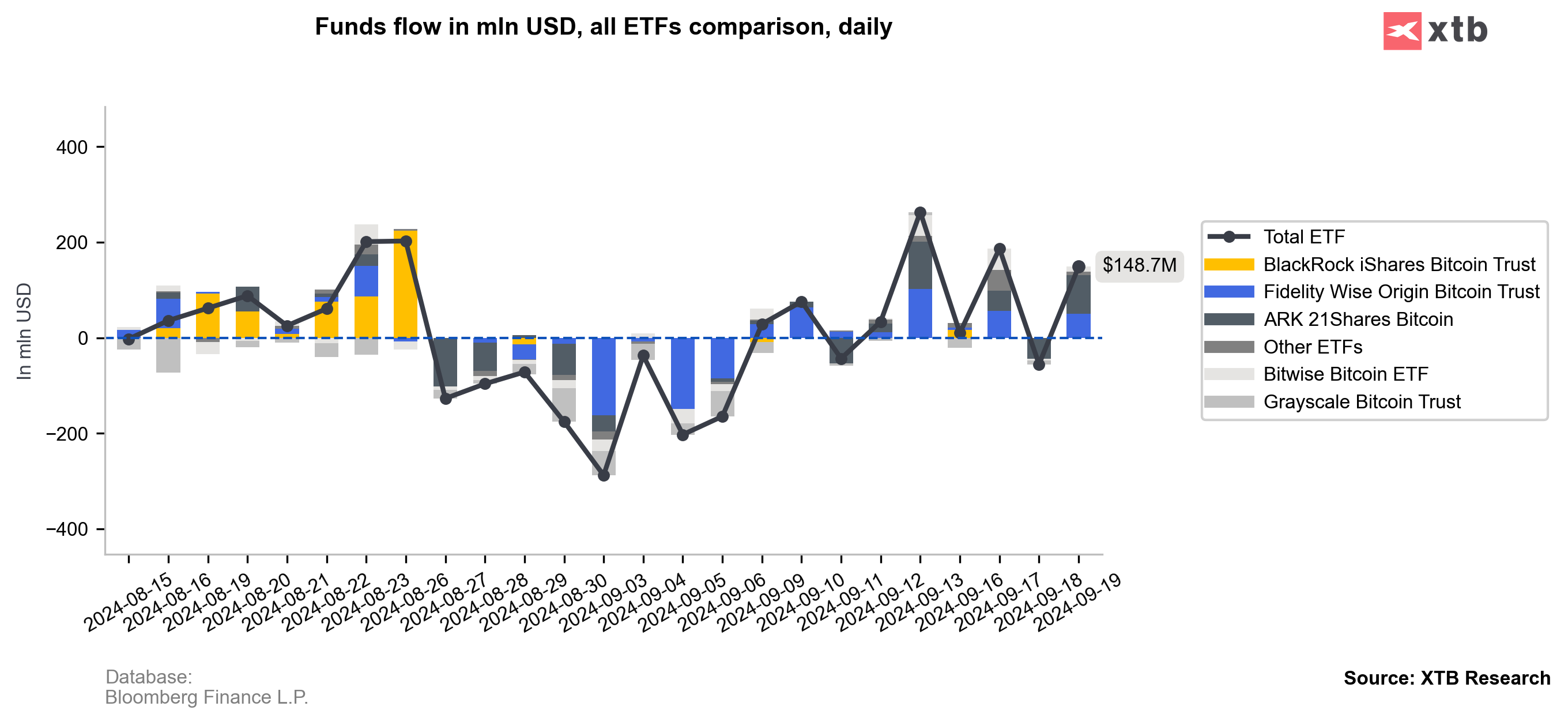 Lower expected Fed interest rate levels, almost in line with 'dovish' market expectations, Wall Street strength and dollar weakness, supported Bitcoin and cryptocurrency market sentiment. The day after the Fed rate cut, net inflows into ETFs totaled nearly $150 million - not so much, looking at the markets' reactions.