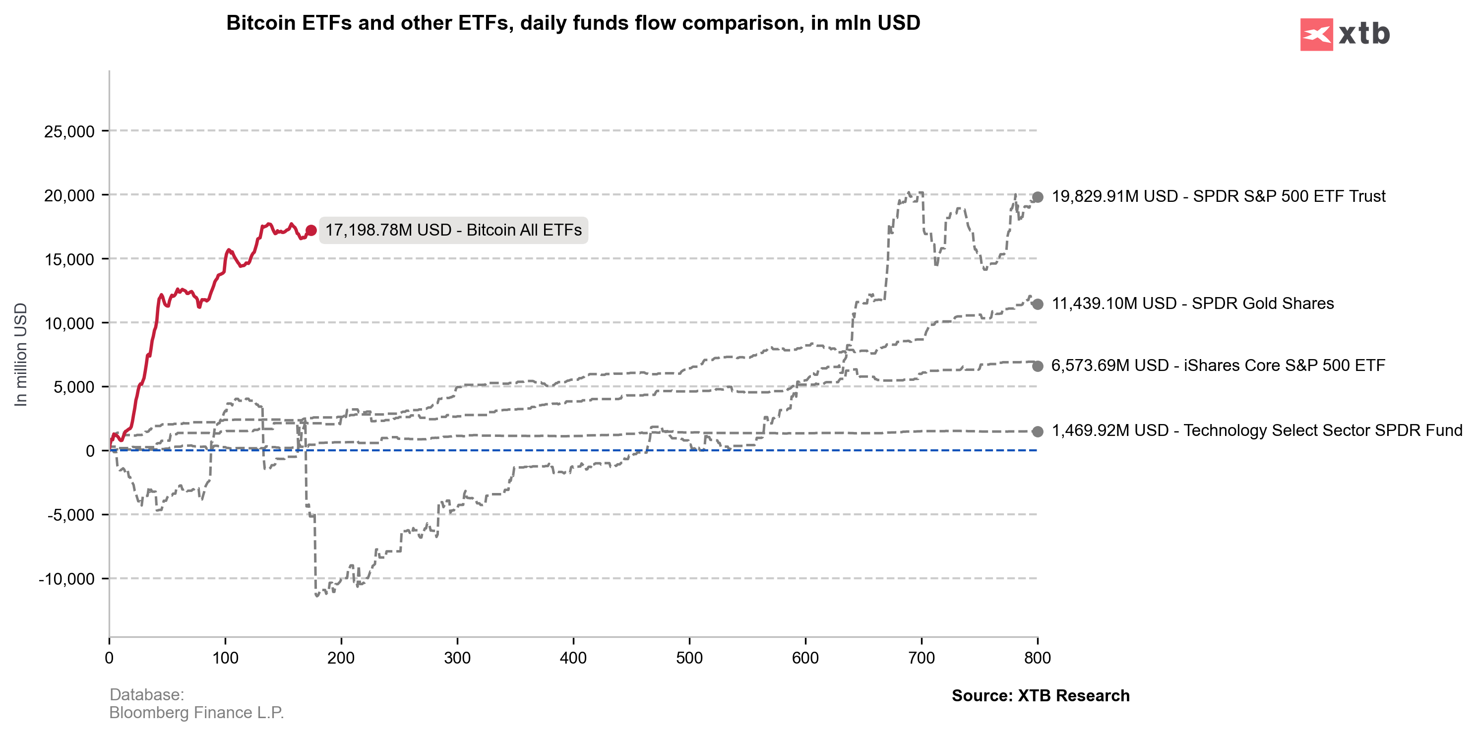 This year, inflows into BTC ETFs total nearly $17.2 billion in net inflows, compared to $20 billion for the 'flagship' S&P 500 ETF. This is still a great result.