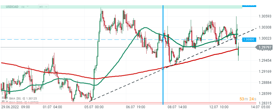 USDCAD broke below 1.3000 after BoC decision . Source:xStation5