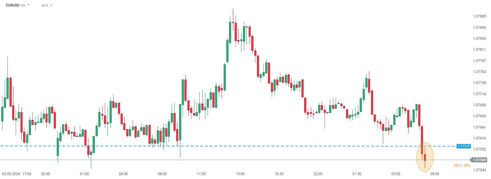 EUR reacted to miss in orders data, deepening ongoing pullback. EURUSD dropped below 1.0760 mark and reach new daily lows.