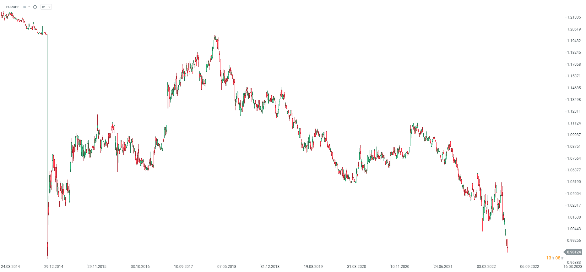 EURCHF tested 0.9800 level - an area where the pair finished trading on the so-called "Black Thursday" in January 2015. Source: xStation5