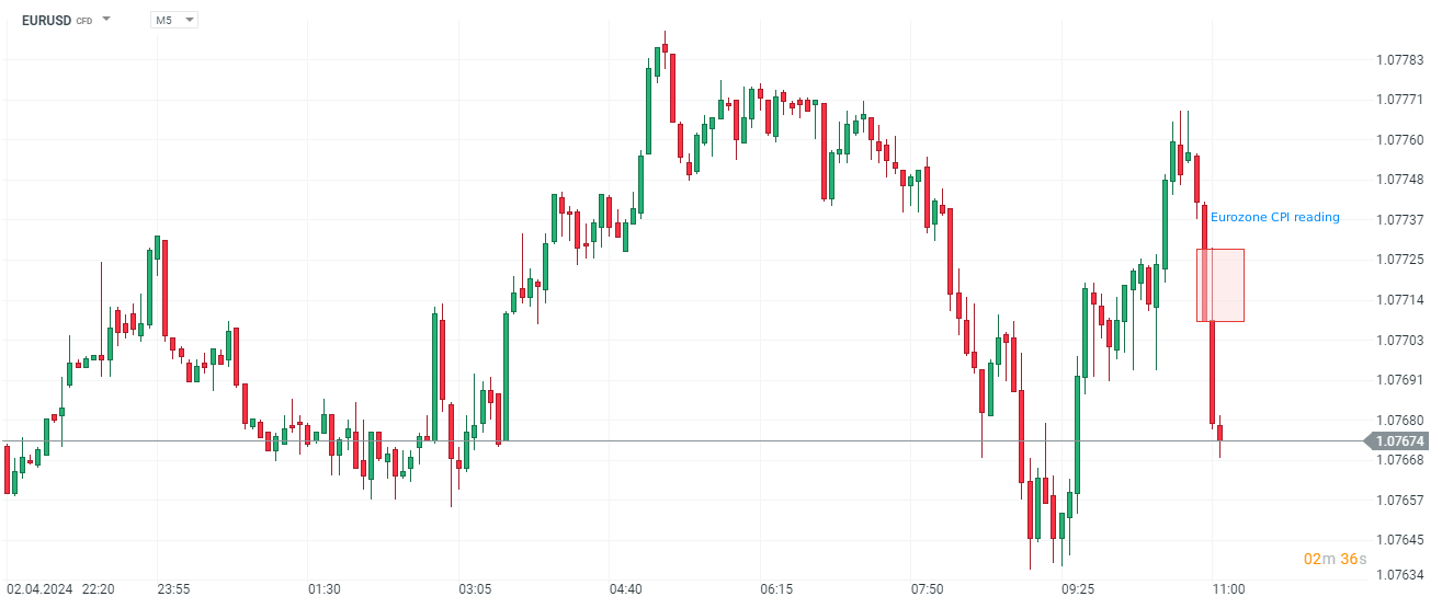Eurozone flash CPI for March came in 2.4% YoY vs 2.5% exp. and 2.6% previously