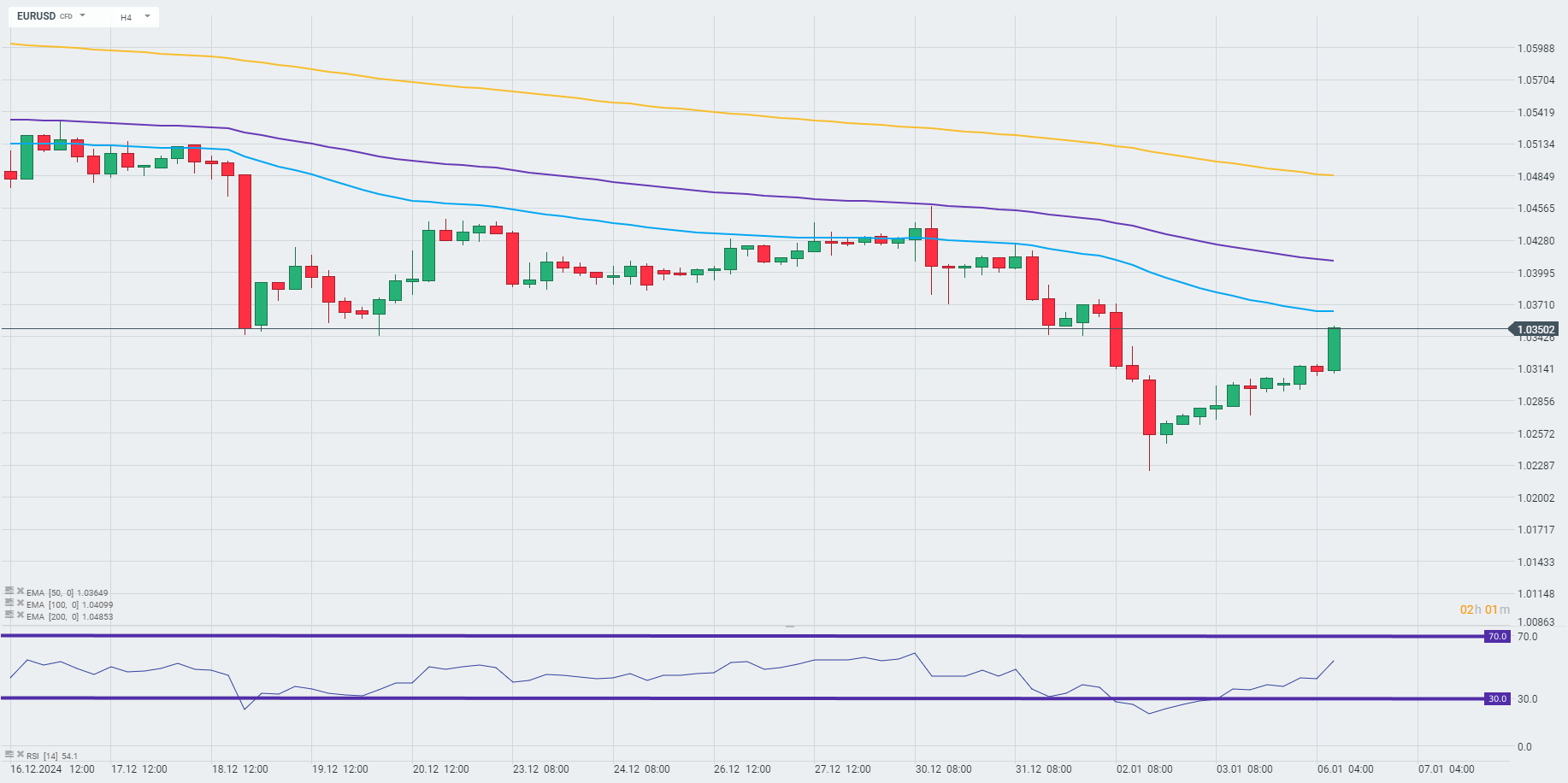 The EURUSD pair is gaining after the publication of better-than-expected PMI data for services for December. Better data, suggesting improving economic conditions in the main economies of the European Union, may encourage the ECB to cut rates more slowly, which naturally strengthens the EUR.