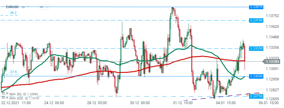 EURUSD broke below the 1.1335 level after FOMC Minutes and is heading towards next support level at 1.1300. Source:xStation5
