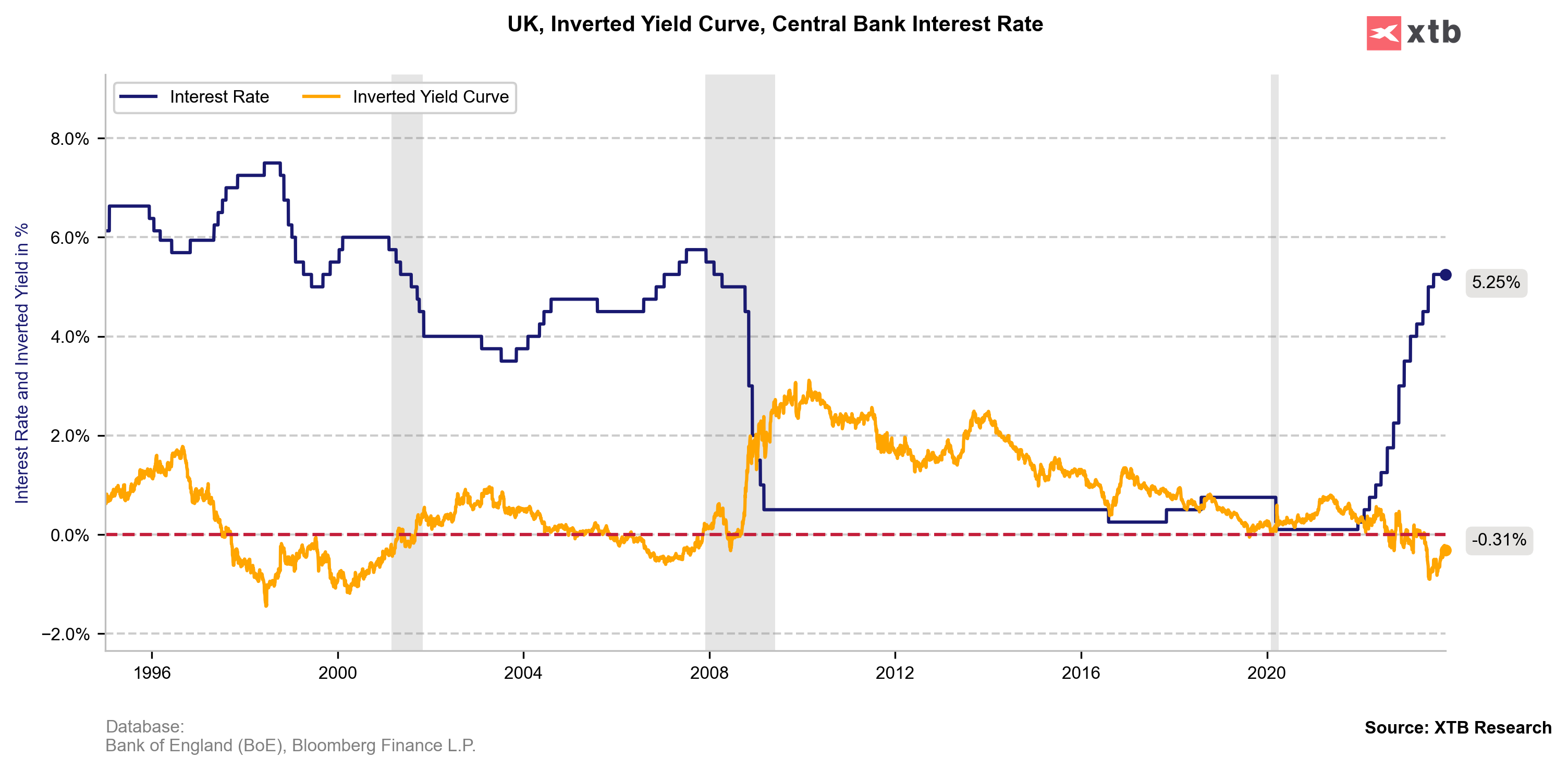 The UK's CPI inflation dropped to 6.7%, below expectations, yet remains above the 2% target. Inflation is anticipated to decline sharply, returning to the target by the end of 2025 and then falling below it. The MPC acknowledges risks of inflation persisting longer than expected, primarily due to wage-price effects and potential rises in energy prices. The MPC's stance remains restrictive, emphasizing the need to be sufficiently restrictive for a prolonged period to sustainably return inflation to the 2% target. The outlook suggests continued restrictive monetary policy, with further tightening possible if persistent inflationary pressures are observed.