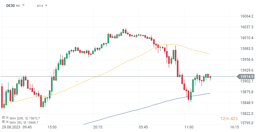 DAX showed no noticeable reaction to the data release. Poorer economic data across Europe appears to outweigh the higher CPI in Germany. Additionally, the general trend is downward, as the previous release was at 6.2% year-over-year. Source: xStation 5.