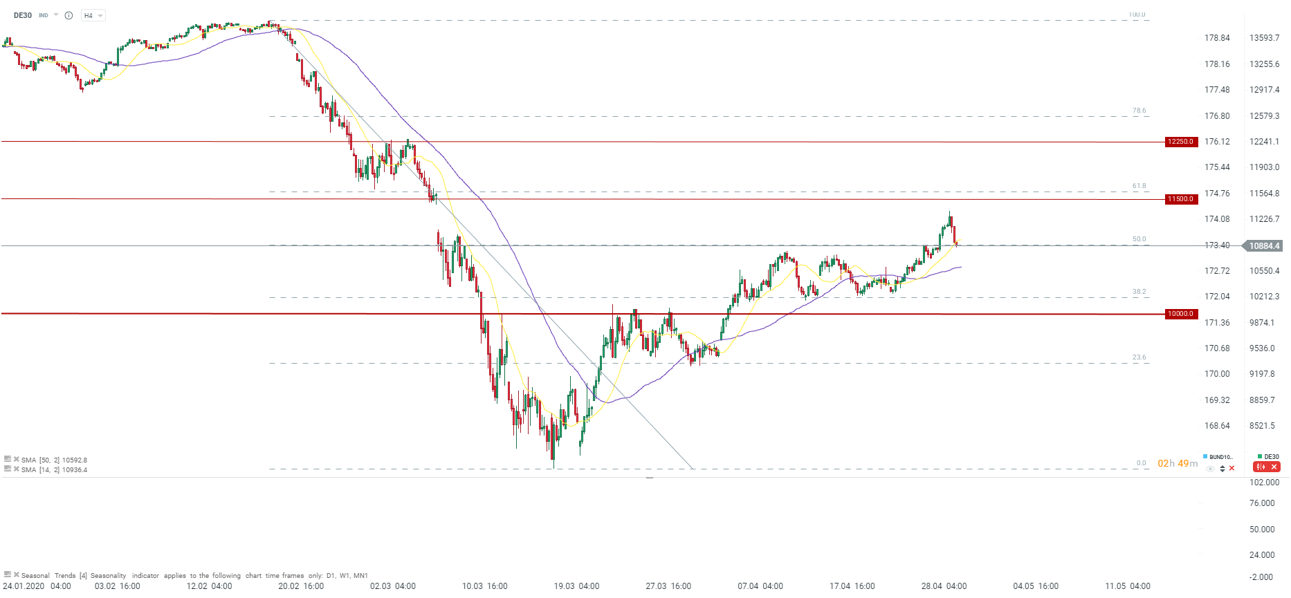 The German federal government is delaying the decision to open schools, kindergartens and resumption of the German Bundesliga season. Why is this important information for markets? Germany is set as an example when it comes to dealing with coronavirus. Data regarding new cases confirms this. The peak was seen at the turn of March and April, and currently the number of new cases does not exceed 1,000. Therefore, if Germany does not decide to return to normality, it may mean that the situation is more serious than everyone thought, which could negatively affect economic and consumer activity.
