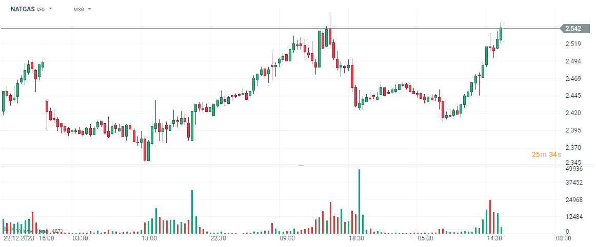 Futures on natural gas extend gains slightly after the reading, which showed a faster pace of inventories decline.If the temperatures in US will be even lower than now, the test of $3 /MMBtu may be not excluded.