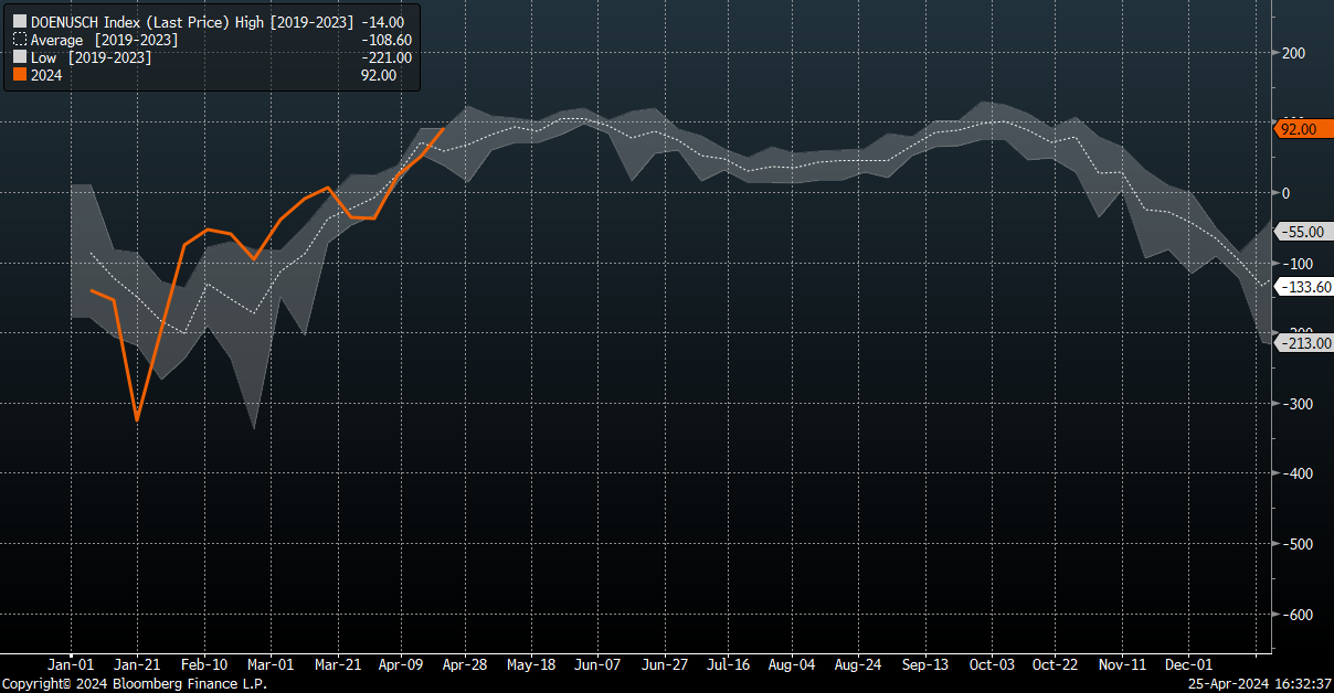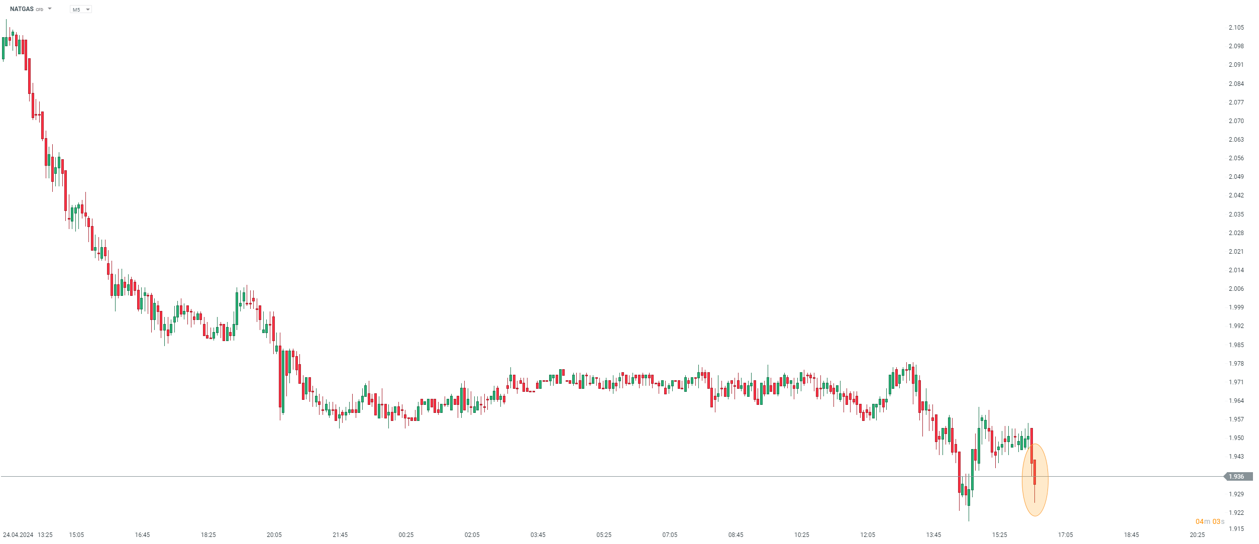 Actual report showed a bigger-than-expected build of 92 billion cubic feet. Change in inventories was more or less in-line with seasonality. US natural gas prices (NATGAS) moved lower following the release, but the scale of the move was small.