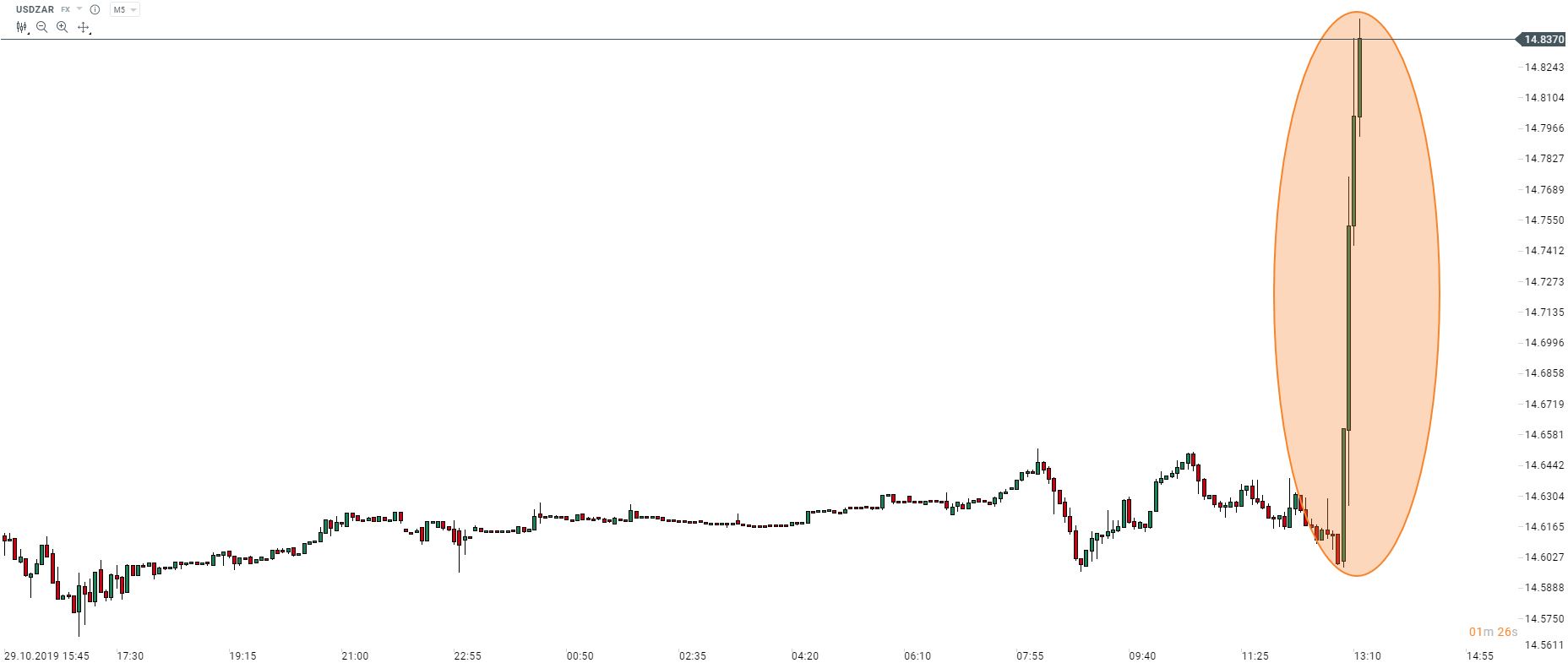 USDZAR surged after Medium-Term Budget Policy Statement was announced. Source: xStation5