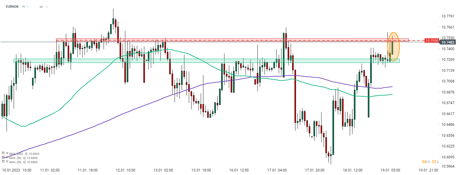 Norges Bank announced its latest monetary policy decision today at 9:00 am GMT. Central bank left rates unchanged at 2.75%, in-line with market expectations. EURNOK jumped in a knee-jerk move and is now testing resistance zone ranging around 10.75 mark. Weakening of Norwegian krone can be reasoned with the fact that almost half of economists surveyed by Bloomberg or Reuters expected a 25 bp rate hike.