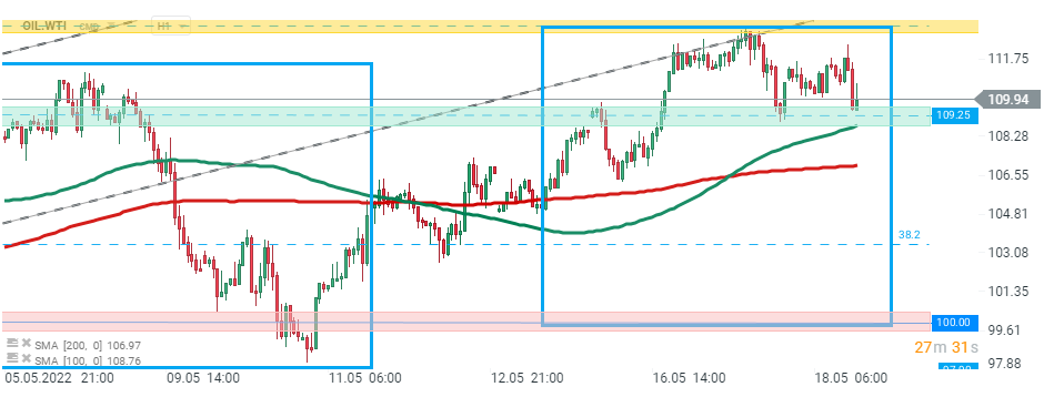 The publication of today's report did not have a significant impact on the oil prices. WTI Oil (OIL.WTI) continues to trade around the $109.25 level. Source: xStation5