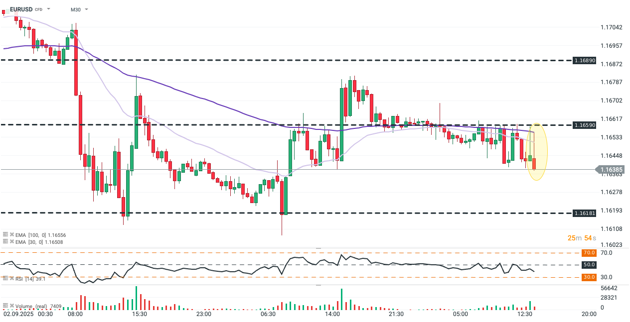 EURUSD attempted a breakout above the 100-period EMA on M30 interval, although it quickly extended a slight downward pressure on the pair, counterintuitively to the expectations set by the reading.