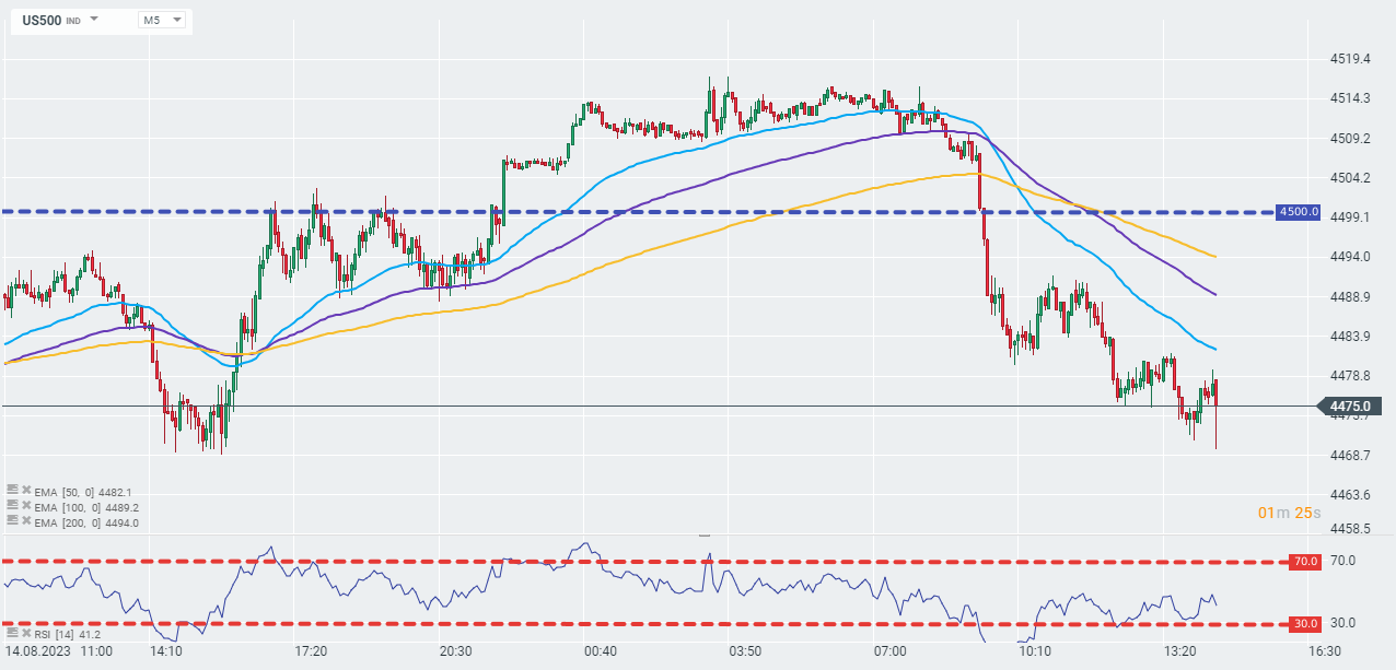 The US500 index loses slightly after the retail sales data reading.