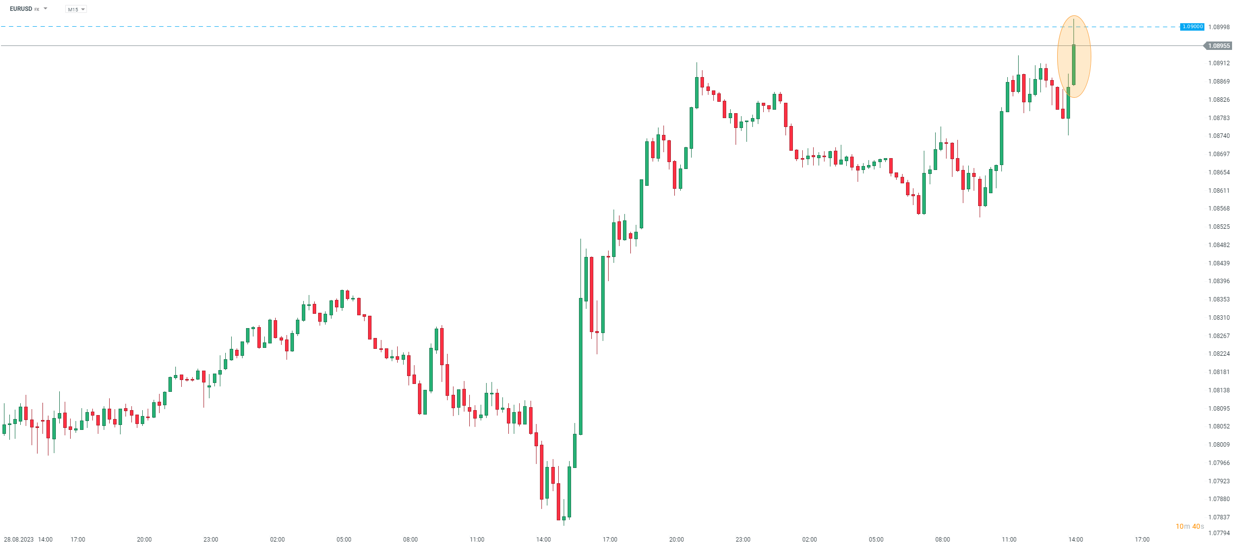 EURUSD jumped following release of ADP data and tested 1.09 mark. Source: xStation5
