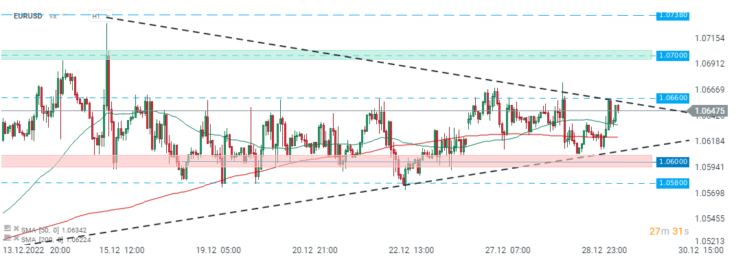 EURUSD saw relatively small reaction to today’s data releases. The most popular currency pair continued to trade below resistance at 1.0660. Source: xStation5