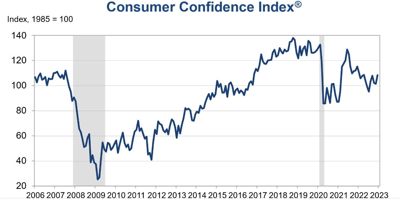 “Consumer confidence bounced back in December, reversing consecutive declines in October and November to reach its highest level since April 2022. The Present Situation and Expectations Indexes improved due to consumers’ more favorable view regarding the economy and jobs. Inflation expectations retreated in December to their lowest level since September 2021, with recent declines in gas prices a major impetus. Vacation intentions improved but plans to purchase homes and big-ticket appliances cooled further. This shift in consumers’ preference from big-ticket items to services will continue in 2023, as will headwinds from inflation and interest rate hikes” said Lynn Franco, director of economic indicators and surveys at The Conference Board.