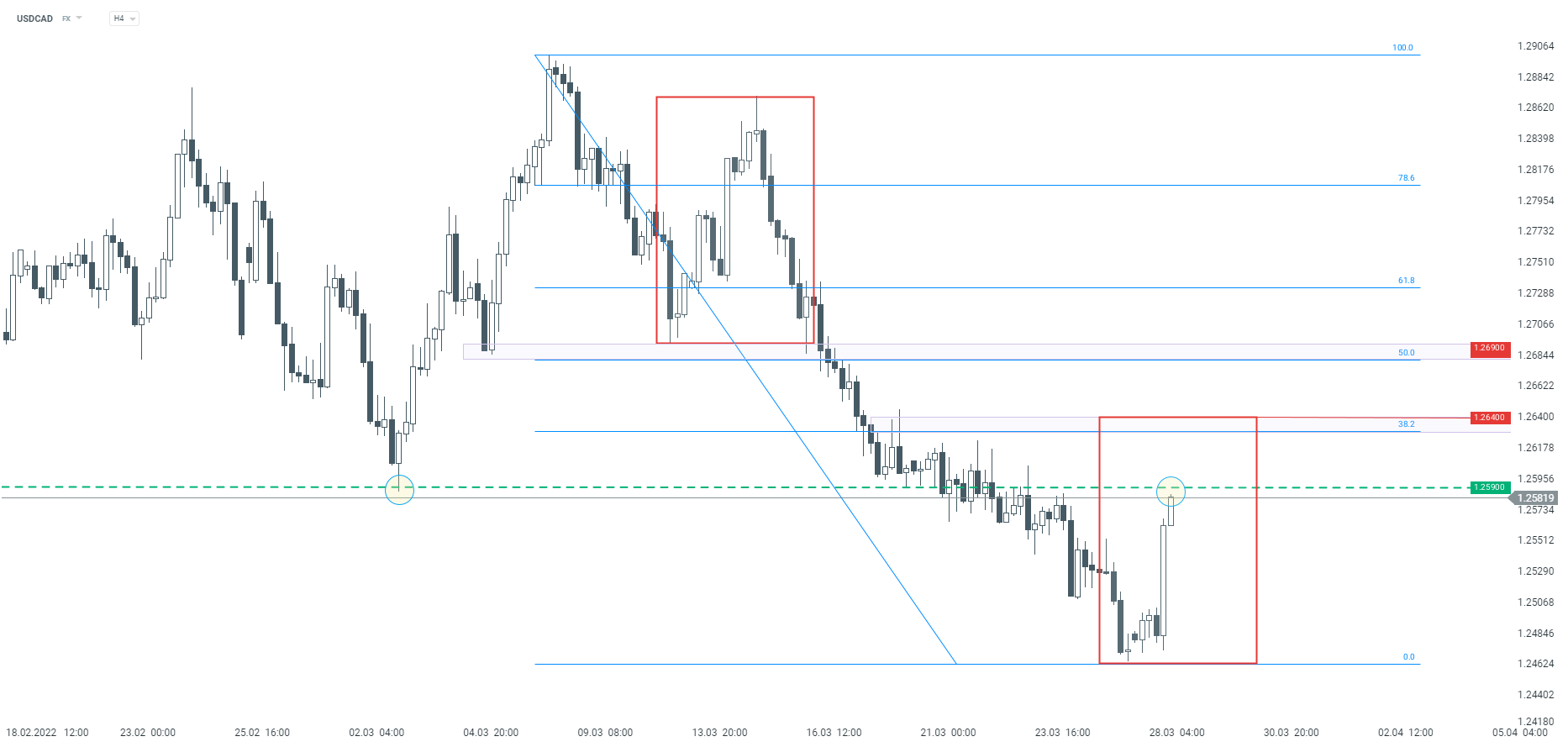 From a technical point of view, USDCAD pair launched a dynamic upward correction. However, it is worth paying attention to the level of 1.2590, which may act as a short-term resistance. Should a break higher occur, the next two major resistance zones are located at 1.2640 and 1.2690. Source: xStation5, H4 interval.