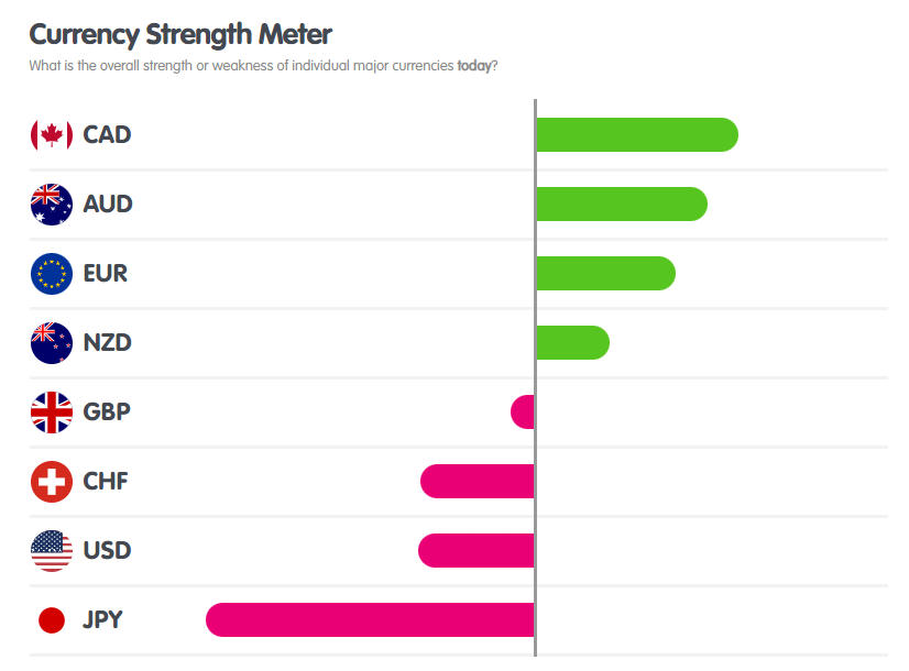 The Canadian dollar is the strongest currency of the G10 countries today. Source: babypips