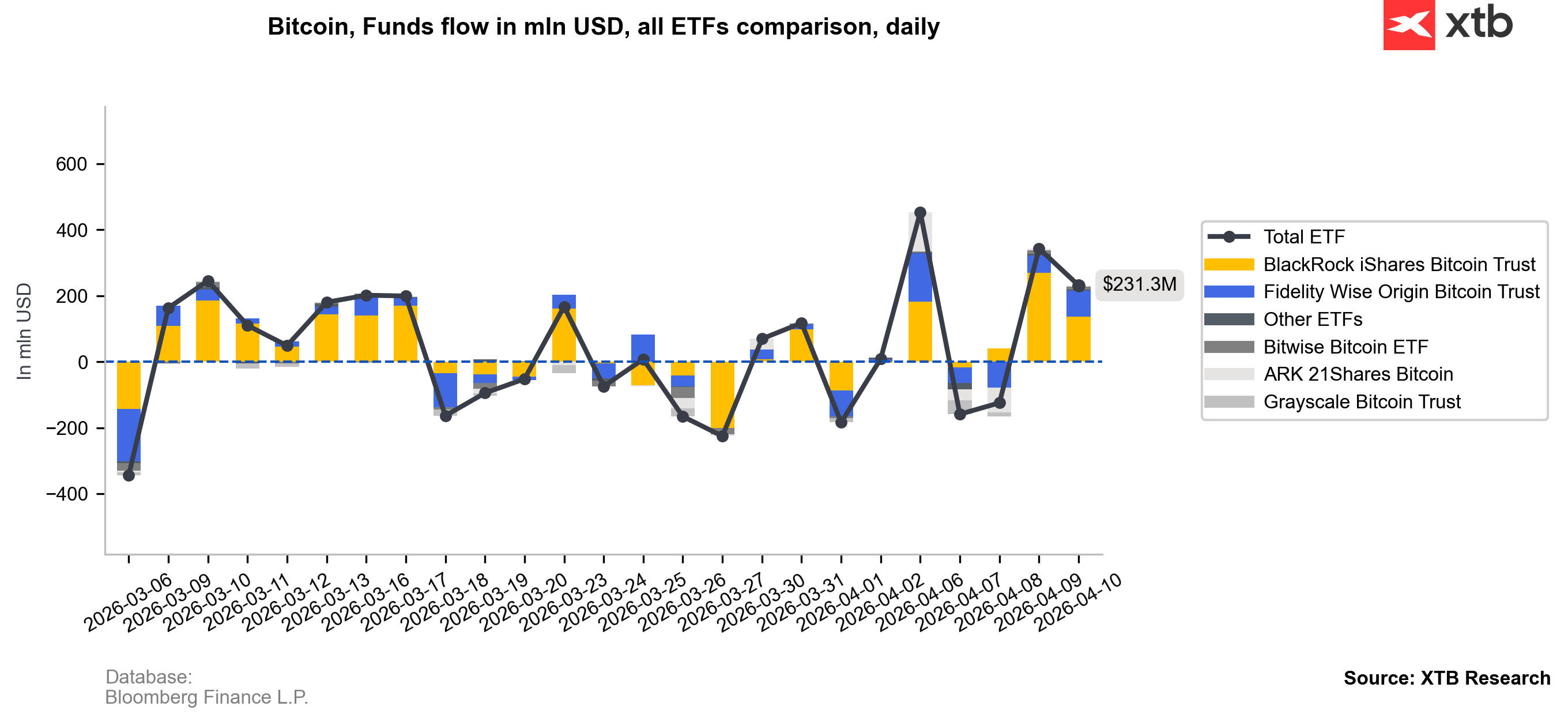 ETFs are buying Bitcoins again? Bloomberg data shows that the answer is - yes. We can see quite large improvement in investors' sentiments confirmed by Bitcoin ETFs activity.