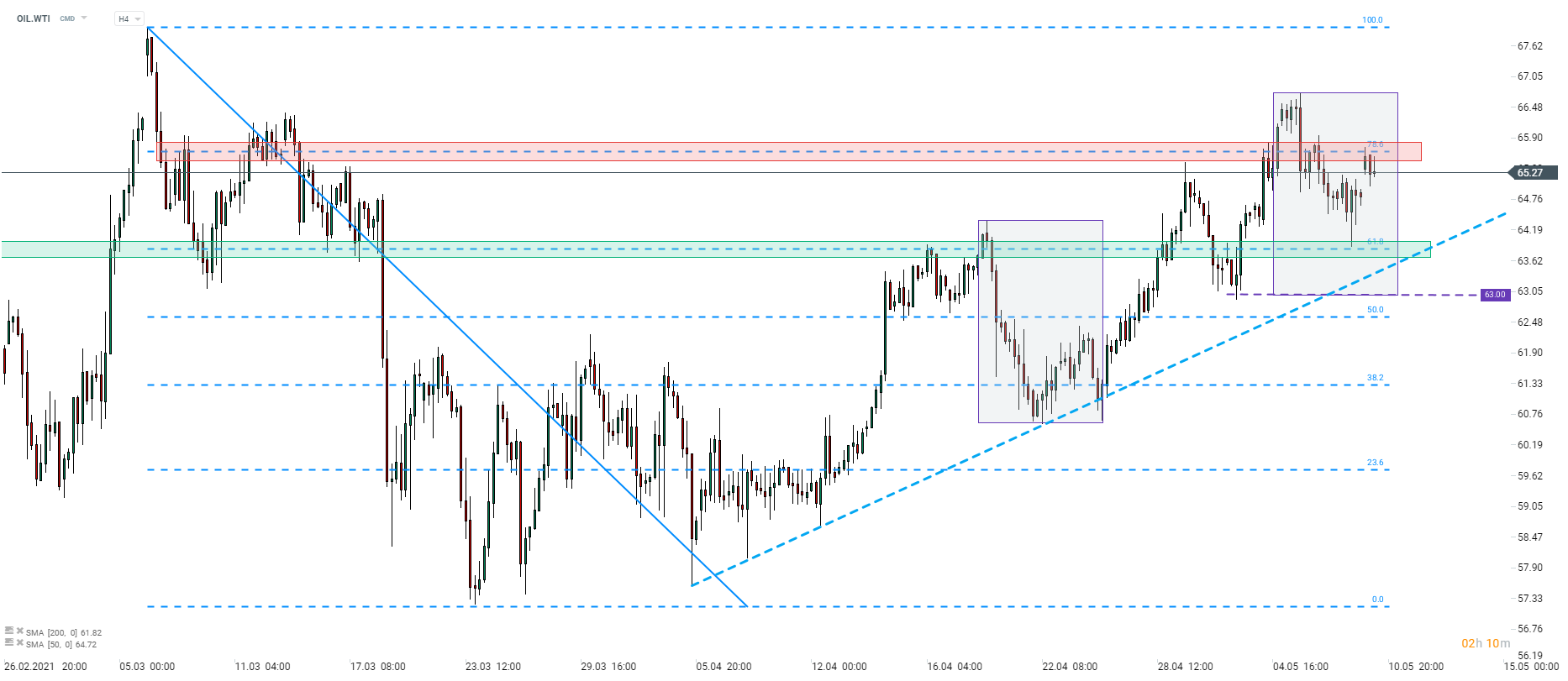 Oil launched a new week higher following a cyberattack in the United States on Friday. As a result of the attack, Colonial Pipeline was forced to shut down the largest oil products pipeline on the East Coast. The US government declared a state of emergency over the matter. So far, it is unknown how long will the shutdown last as the operator is still working on restoring pipeline capacity. If the situation is not resolved quickly, upward pressure on oil and gasoline prices may intensify.