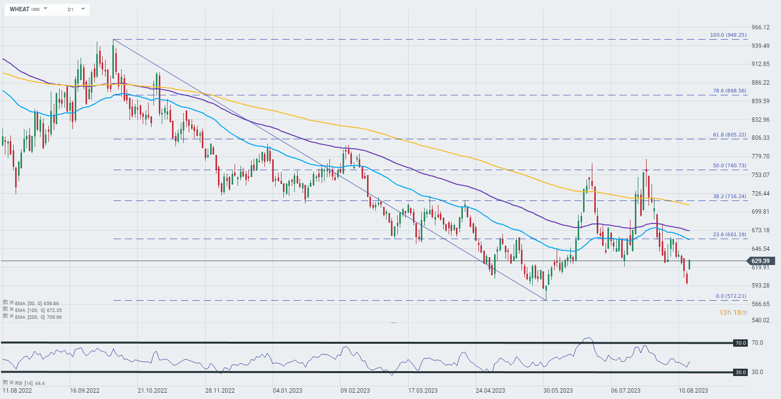 Wheat is still trading with a YTD loss of more than 20% due to abundant harvests in some parts of the northern hemisphere. The U.S. Department of Agriculture on Friday raised its estimate of Russian supplies for the 2023-24 season (domestic cargo estimates were raised to 48 million metric tons for the 2023-24 season. To put this in perspective, this means that nearly a quarter of the world's wheat trade will now come from Russia) and increased its forecast for U.S. wheat stocks by more than analysts had expected.