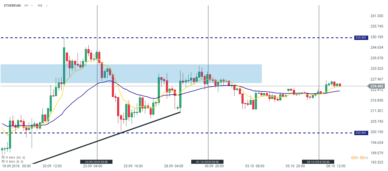 ETHEREUM has marched higher nearly a 1.5% over the past 24 hours therefore it can be viewed as an outperformer among other coins. The cryptocurrency with the second largest capitalization is trading slightly below the $225 handle on Tuesday morning. Source: xStation5