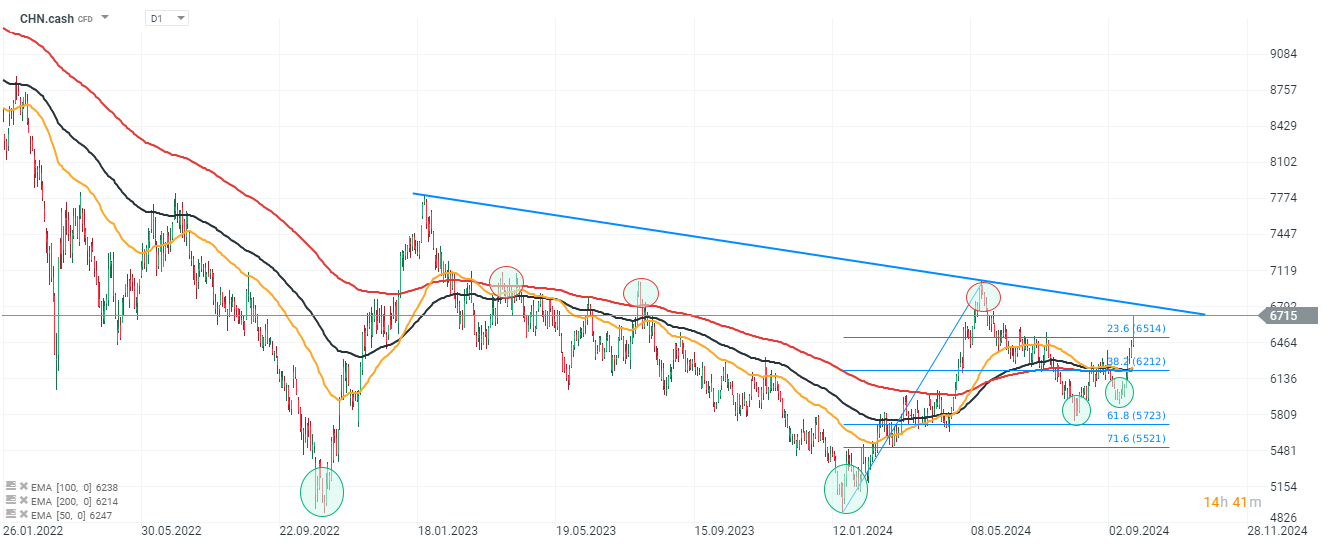 Having crossed all key momentum averages and Fibonacci retracements of the upward wave from the beginning of the year, the index is approaching the main resistance at the level of 6800 - 7000 points, where previous price reactions are located, and the line of least resistance.