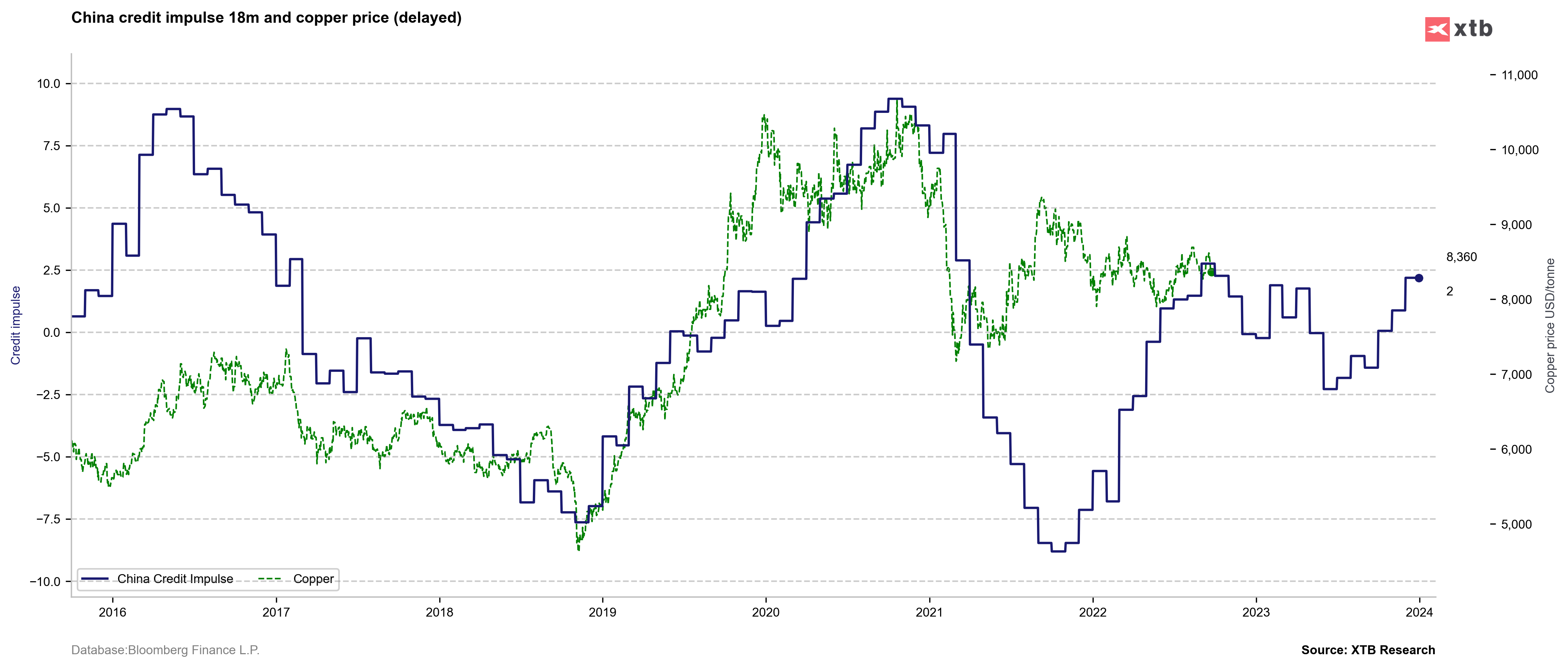 Following the rebound of the credit impulse in China, we are entering a period of stabilization again. Without significant stimulation in China, an increase in demand may be limited. Source: Bloomberg Finance LP, XTB