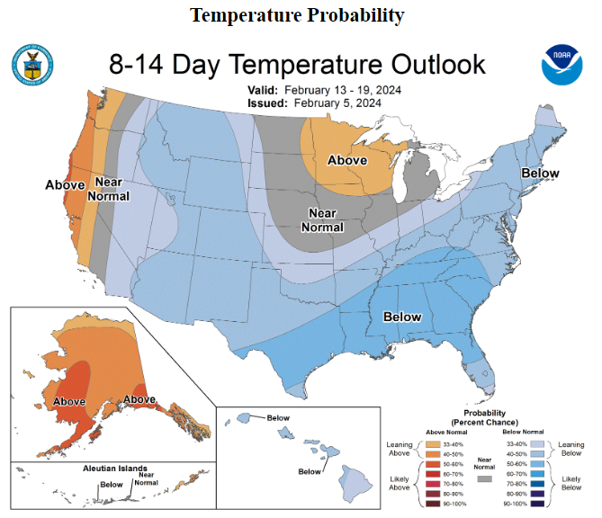 - Forecasts for the period of February 13-19 indicate a drop in temperatures below average across almost the entire United States, which could serve as a basis for short-term changes in fundamental outlook