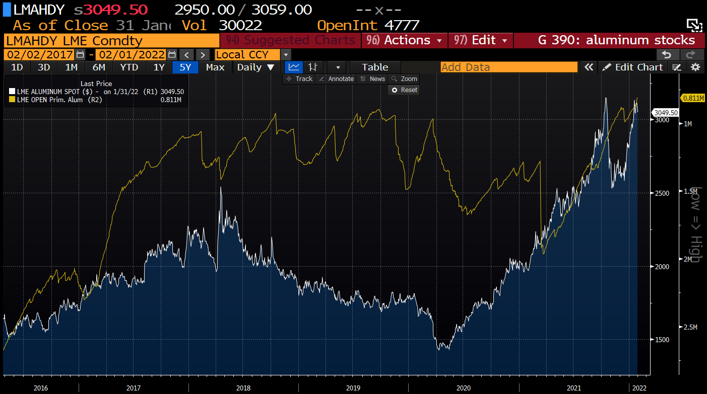 - Tensions between Russia and Ukraine may also potentially hinder access to aluminum