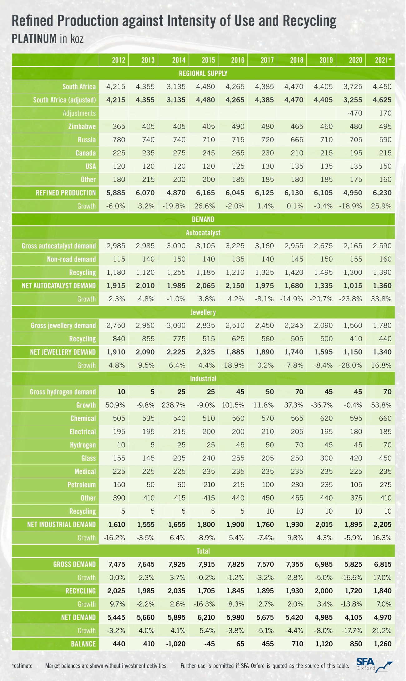 The previous year brought a gigantic oversupply related to the reduction in demand from the car sector and a clear recovery in South African production. Even with a further increase in demand from the automotive sector, the oversupply in 2022 will remain really large. Source: SFA Oxford, Heraeus