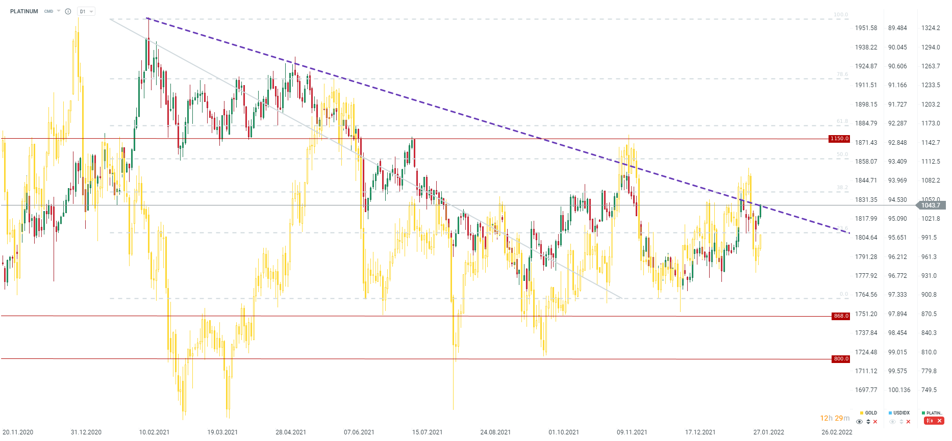 - The hope for platinum is production stagnation in South Africa due to high energy prices or sanctions imposed on Russia in connection with the conflict with Ukraine