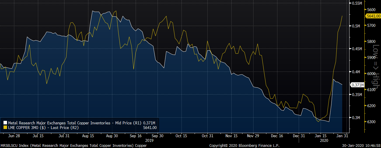 In case the virus is contained quickly, scale of sell-off on copper market can be seen as an overkill. Source: Bloomberg