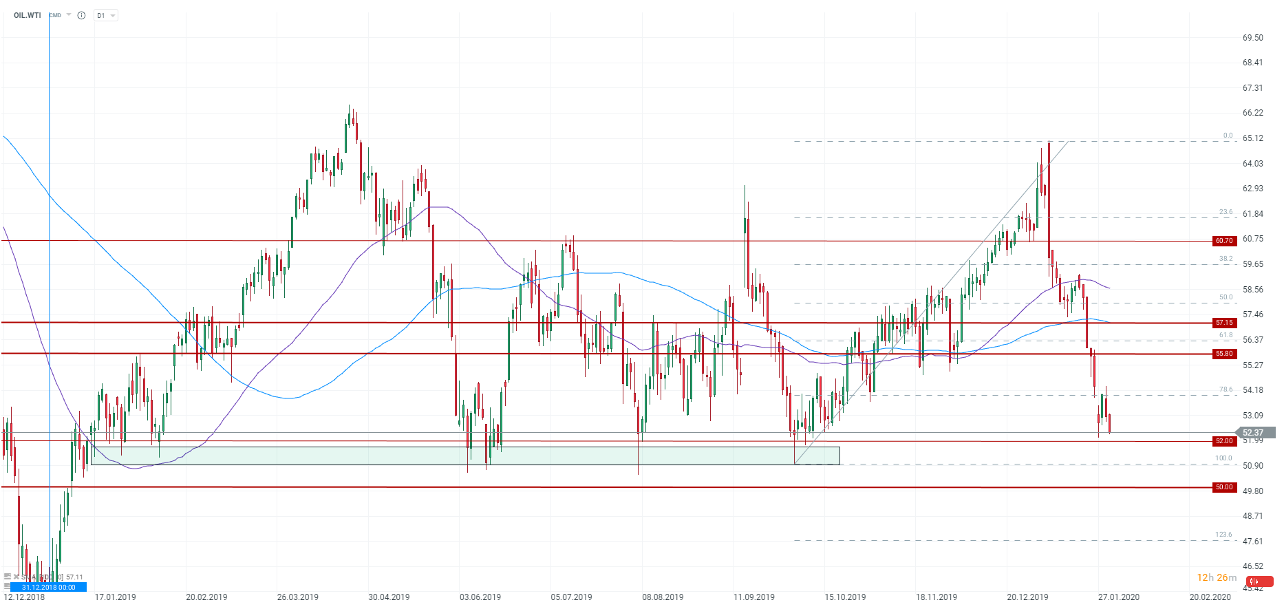 Oil prices declined and reached the key support zone ranging from $50-52. OPEC may decide to act given that demand is expected to be lacklustre, at least in the first half of the year. Source: xStation5